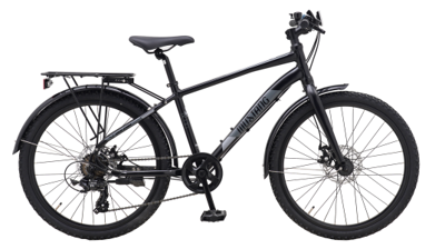 Sej cykel til børn som godt kan lide mountainbike-looket men gerne vil have monterede skærme og bagagebærer.