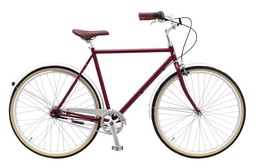Det enkle, slanke stel, de tynde dæk med hvid kant samt sadel og greb i læderlook gør cyklen til et elegant og nostalgisk indslag på cykelstien.